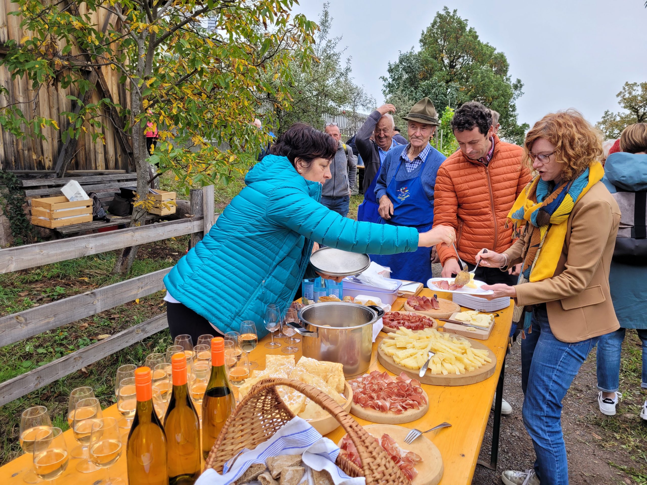 Nach den Ausführungen wurde zu einem bäuerlichen Halbmittag mit einheimischen Spezialitäten von Obmann Erich Egger und seinem Team geladen. Glecihzeitig führte Anton Lanznaster, Pichler-Toni, das Mühlenwerk vor und gab ausführliche Informationen dazu.