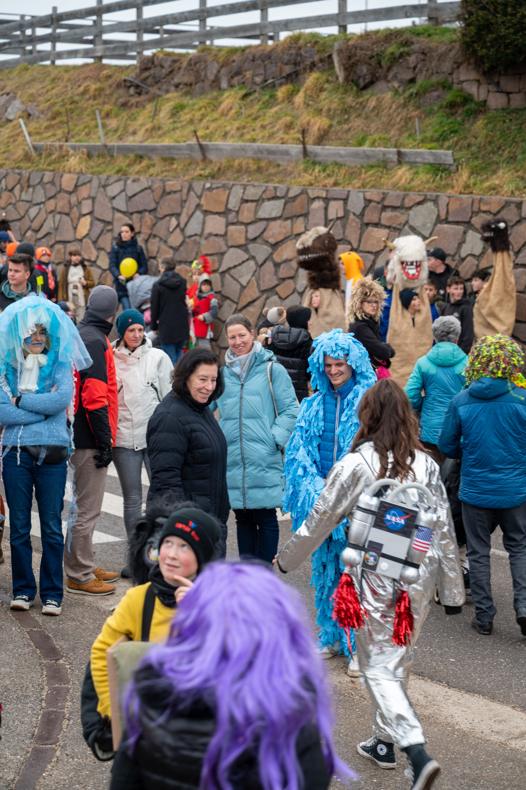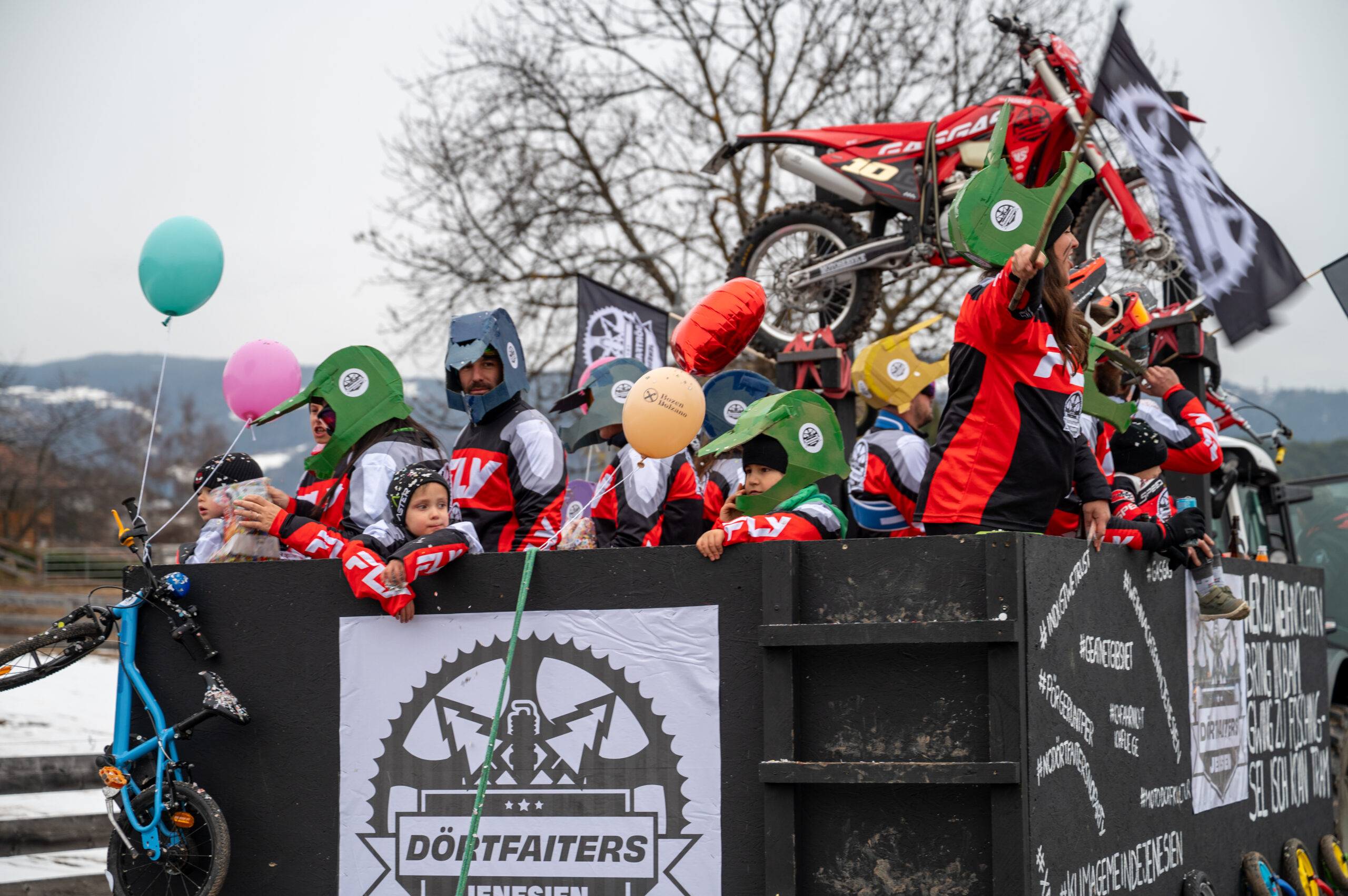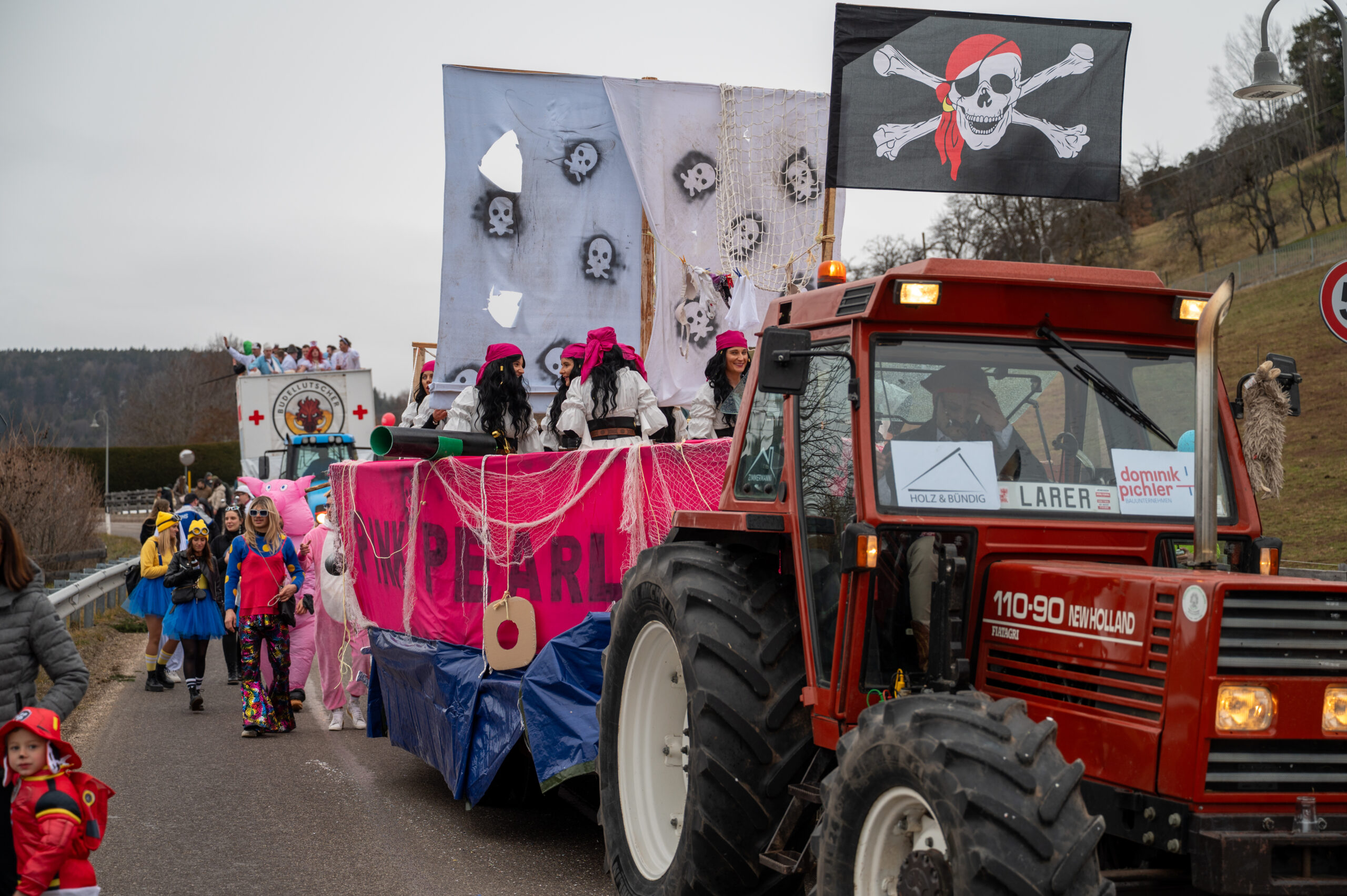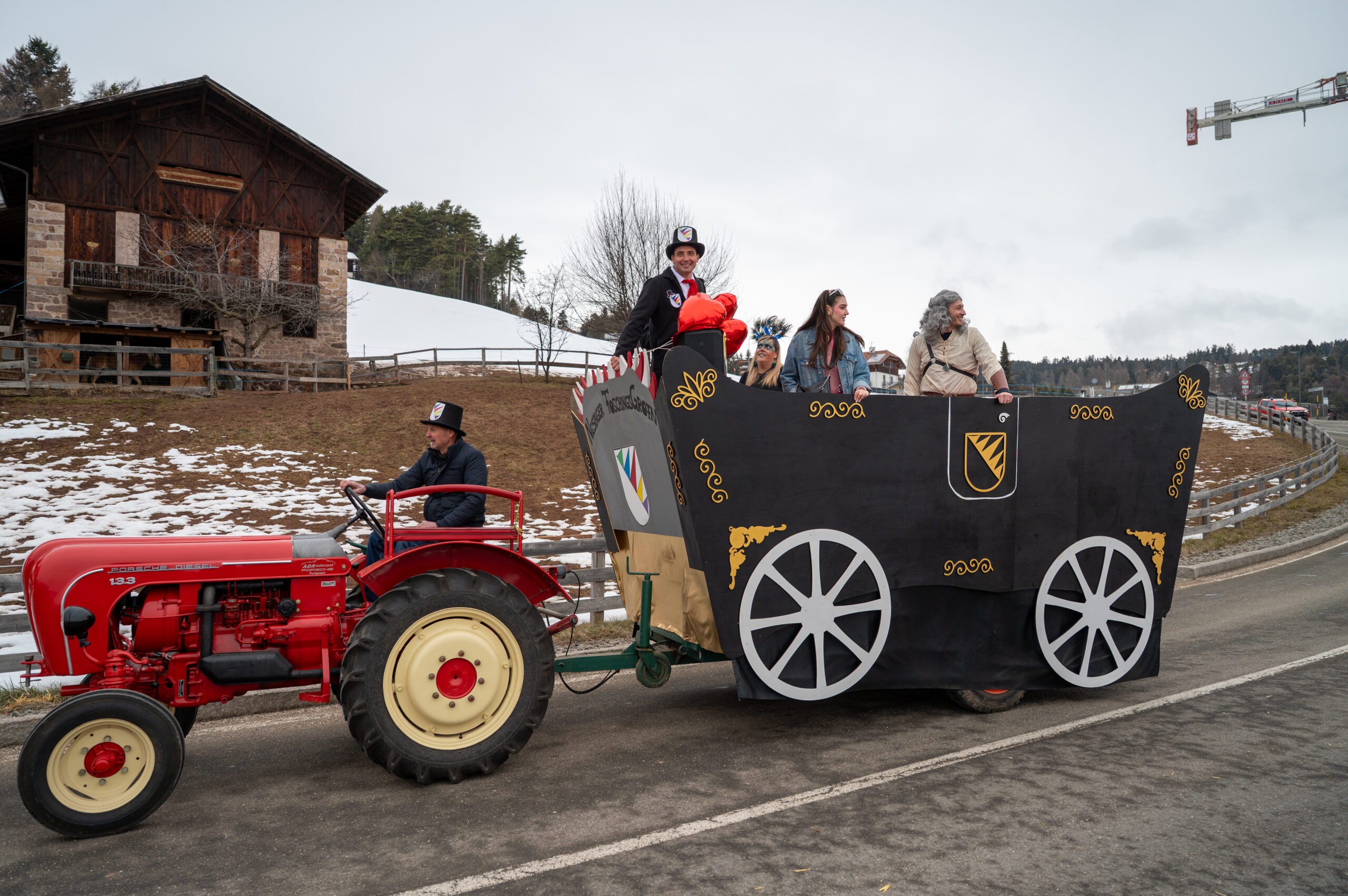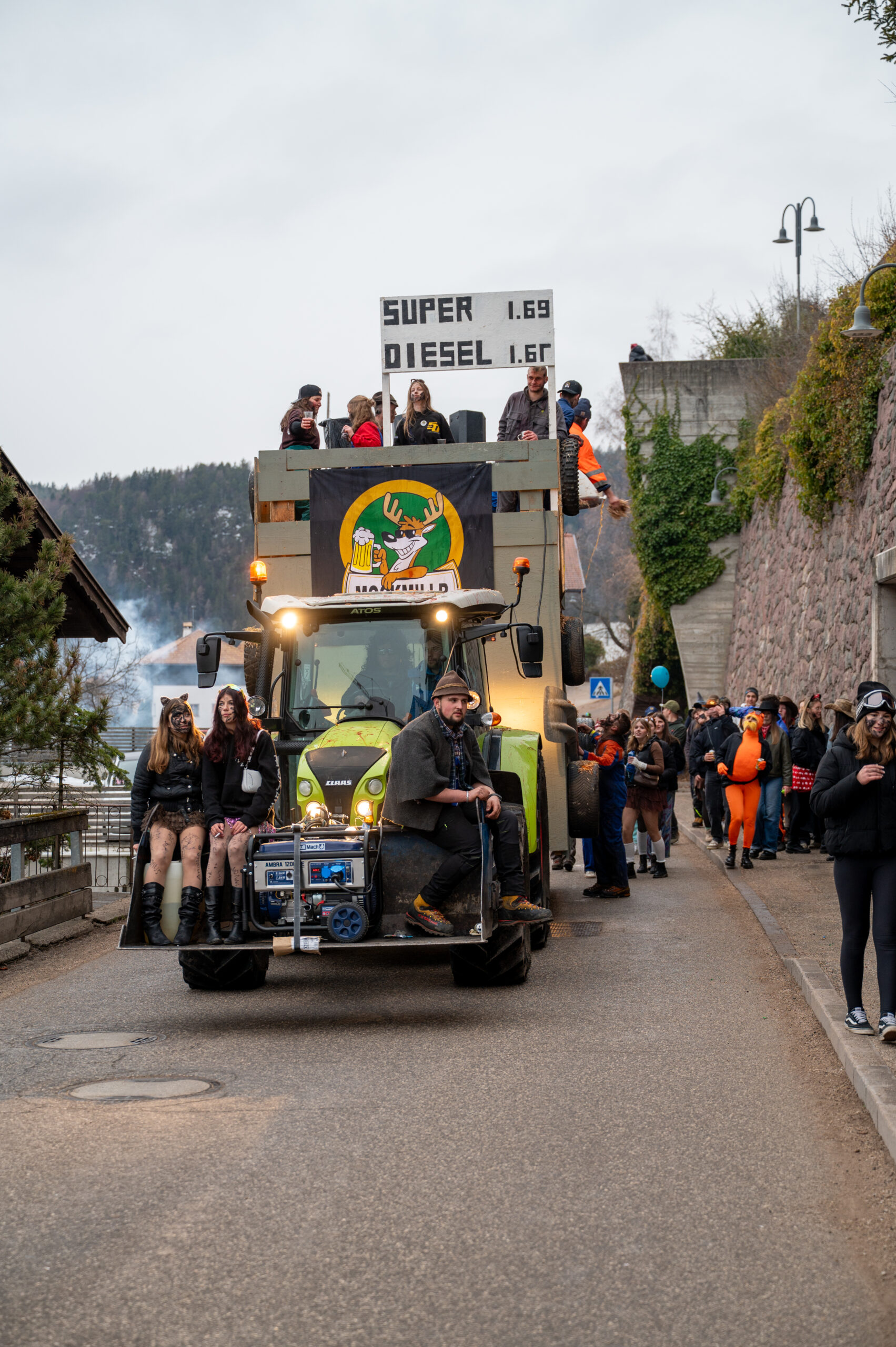 Zahlreiche fantasievoll gestaltete Faschingswagen sowie originell verkleidete Gruppen und Einzelpersonen zogen beim Umzug entlang der Route bis ins Dorfzentrum und sorgten für beste Stimmung. Besonders die aufwendig gestalteten Wagen übertrafen sich auch heuer wieder selbst und nahmen so manches aktuelle Thema mit viel Humor aufs Korn.