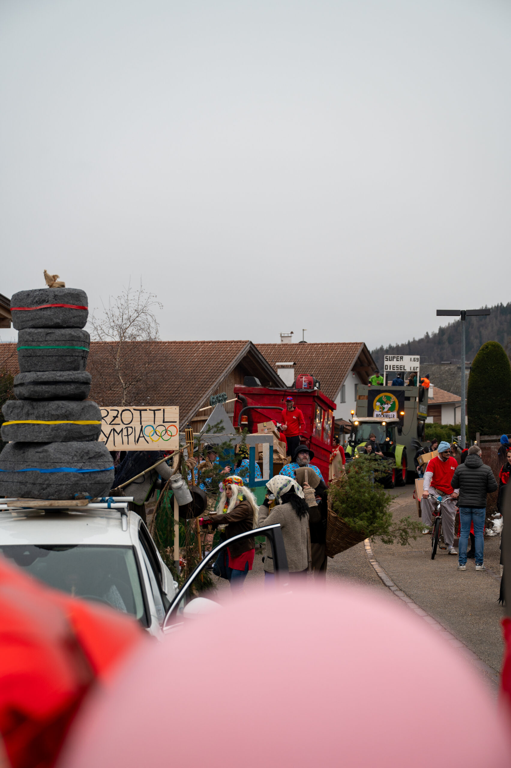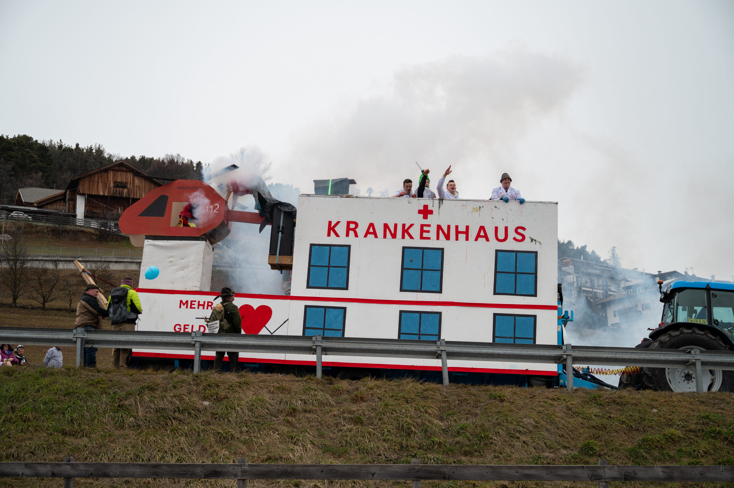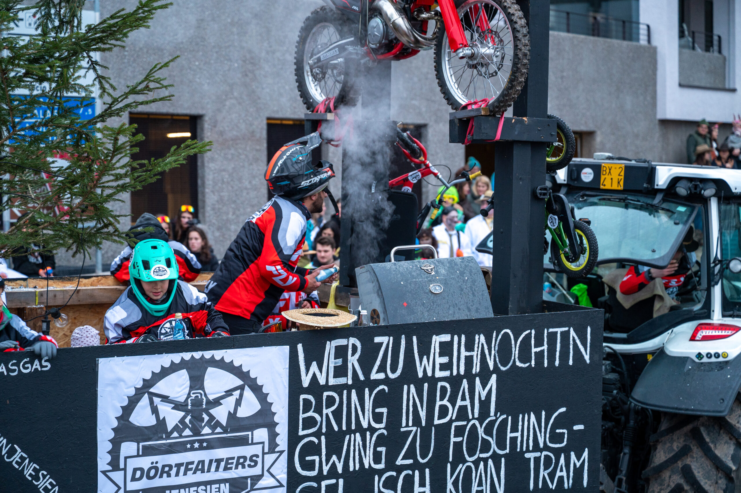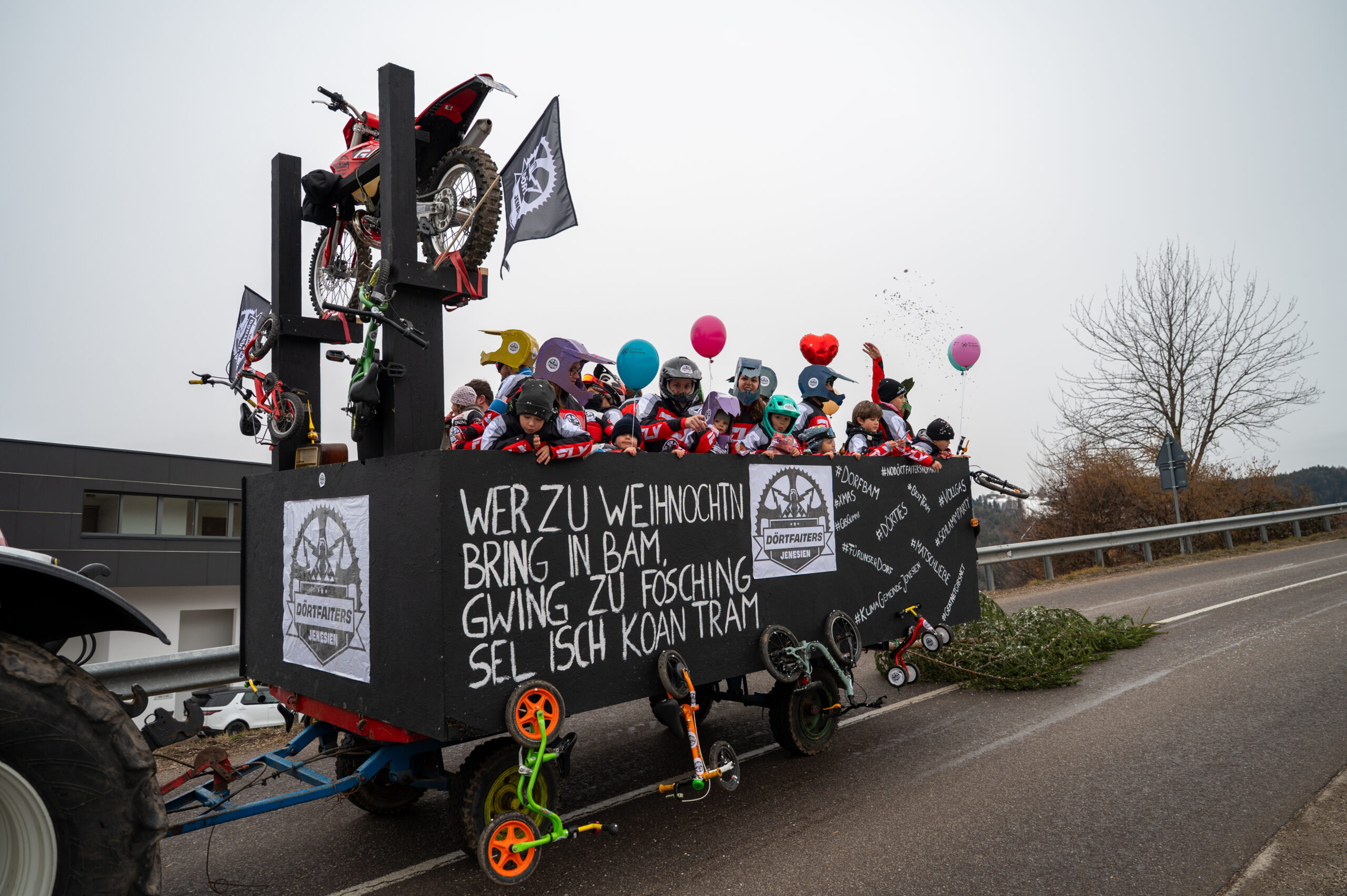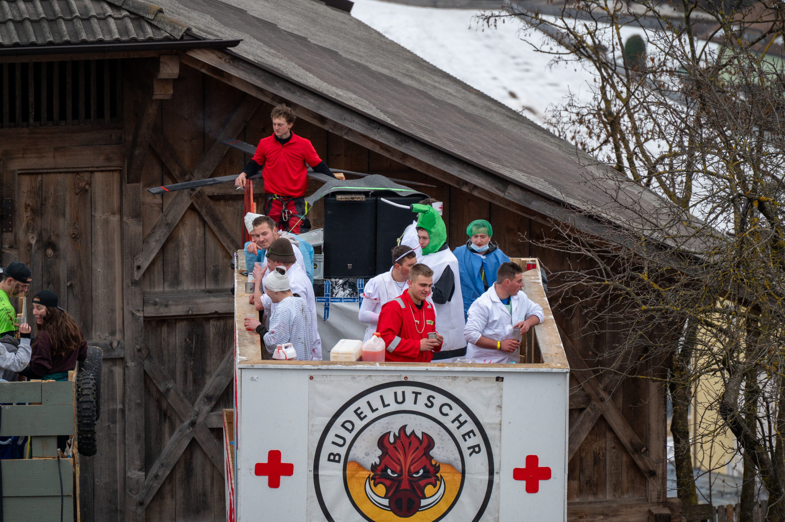 Zahlreiche fantasievoll gestaltete Faschingswagen sowie originell verkleidete Gruppen und Einzelpersonen zogen beim Umzug entlang der Route bis ins Dorfzentrum und sorgten für beste Stimmung. Besonders die aufwendig gestalteten Wagen übertrafen sich auch heuer wieder selbst und nahmen so manches aktuelle Thema mit viel Humor aufs Korn.
