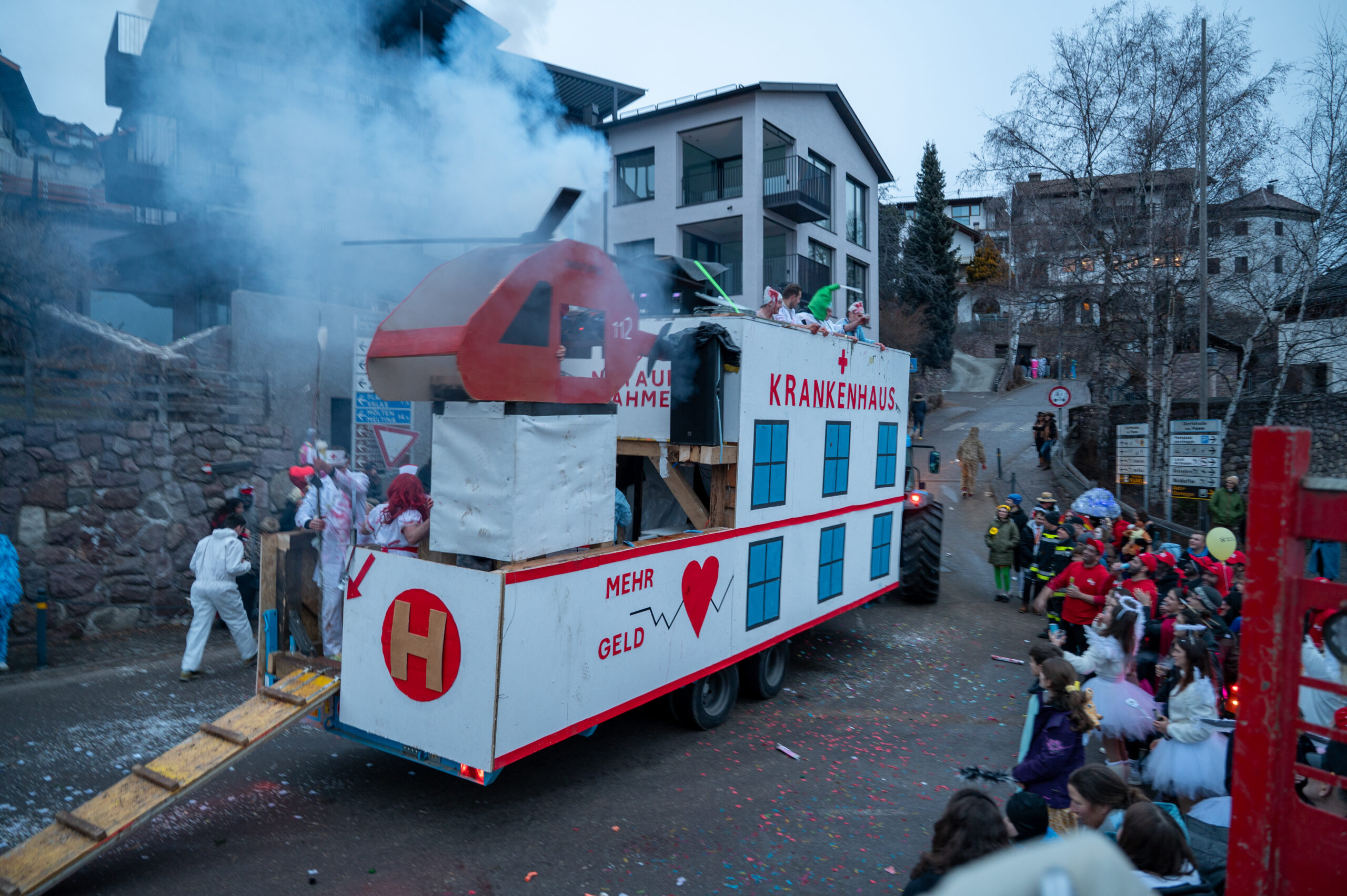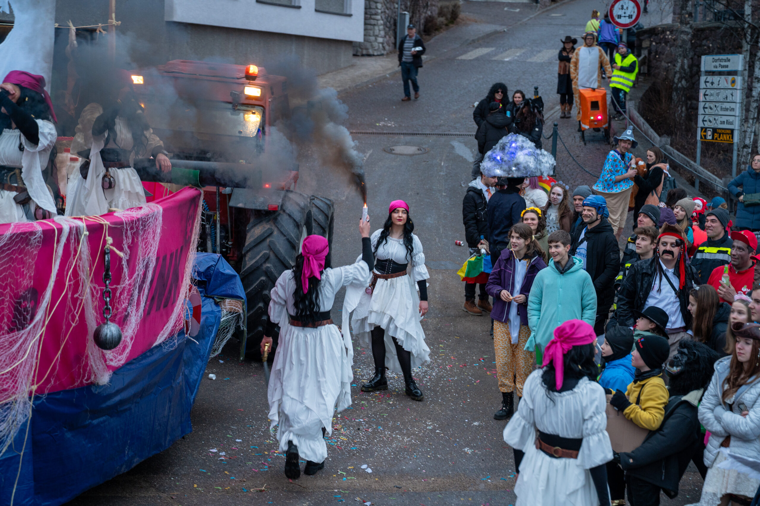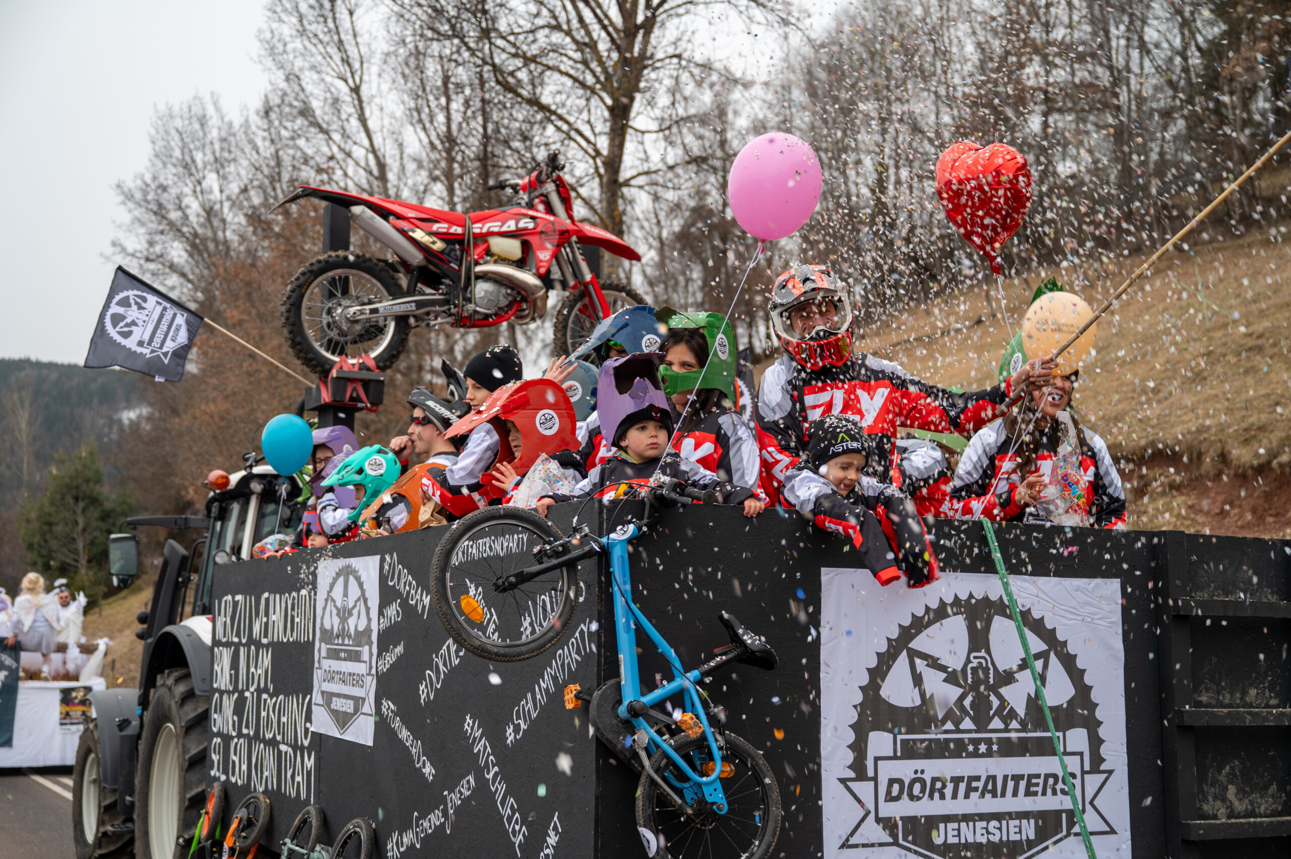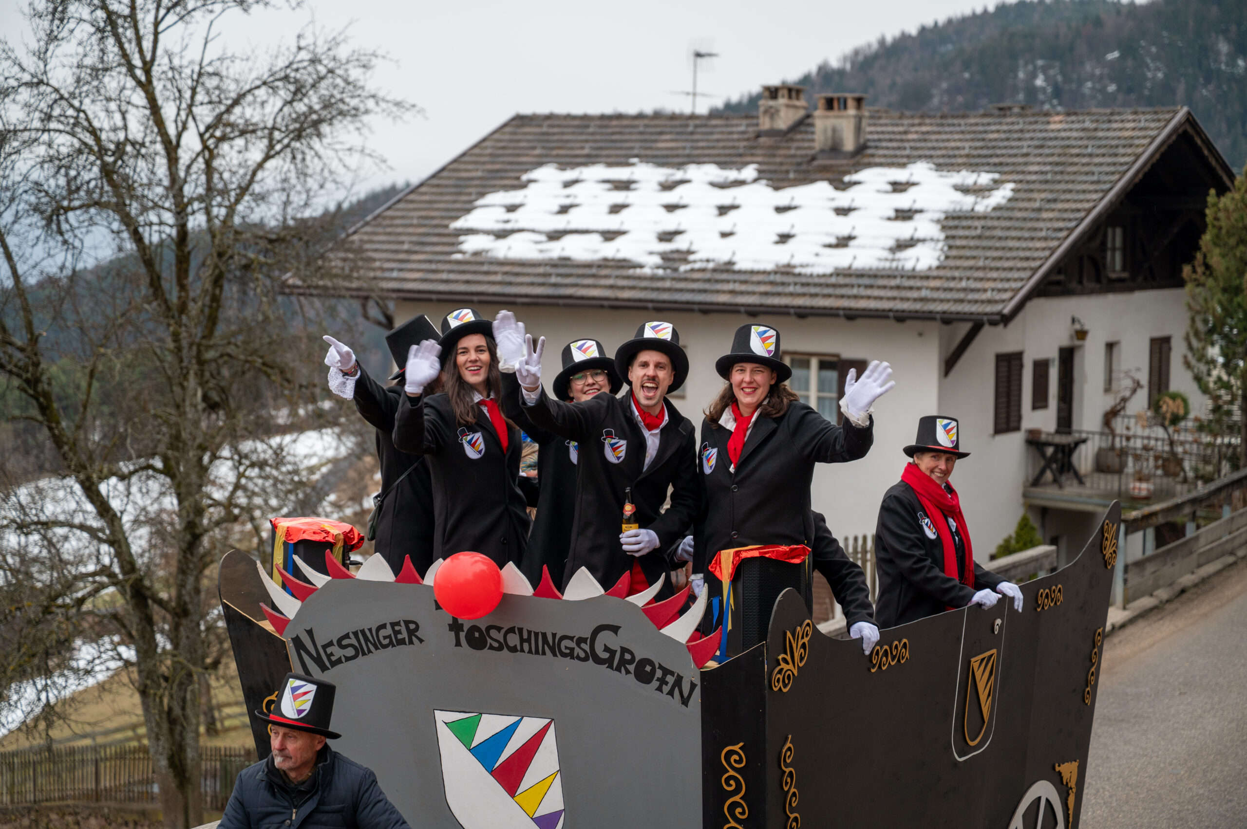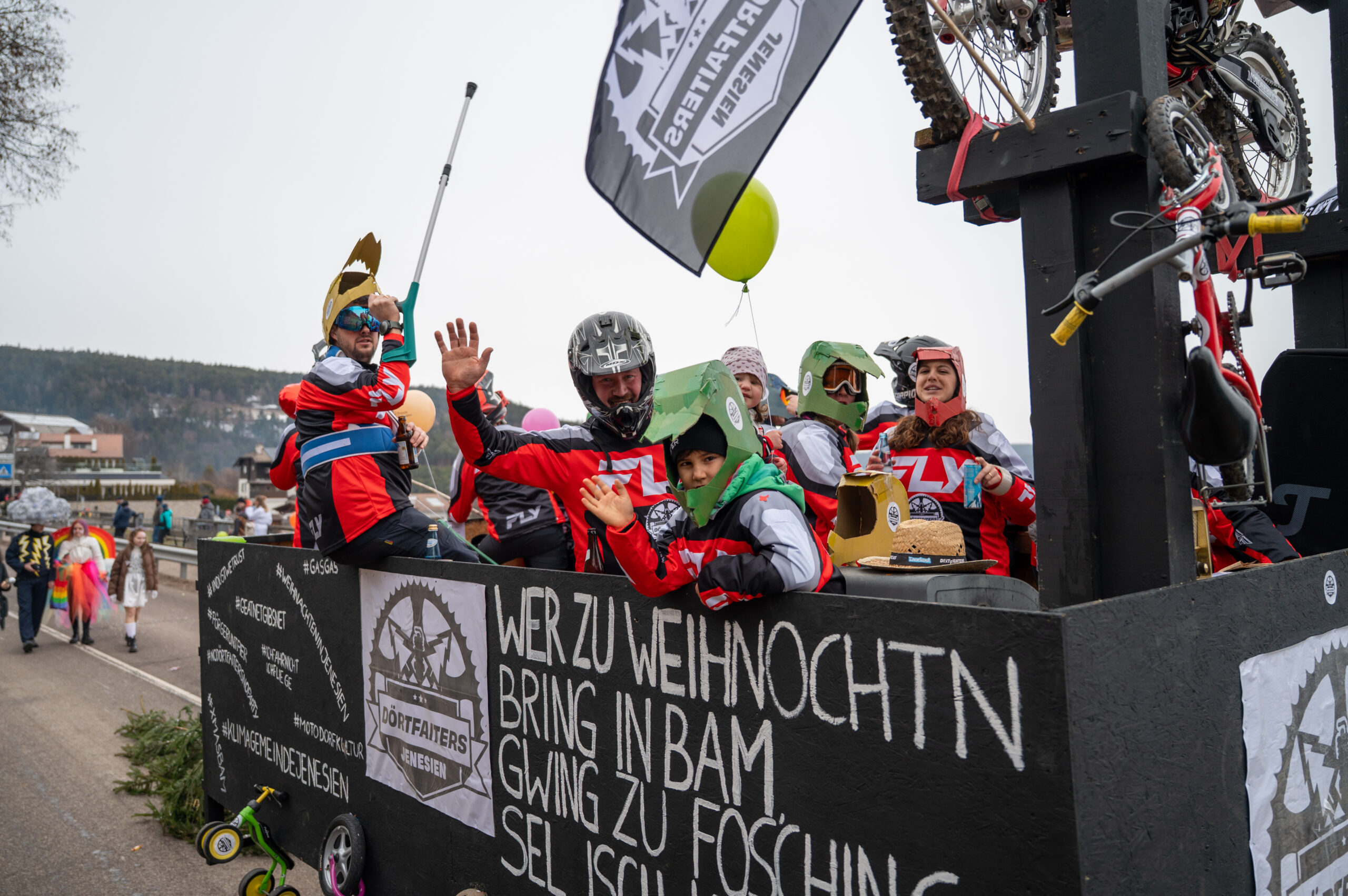 Zahlreiche fantasievoll gestaltete Faschingswagen sowie originell verkleidete Gruppen und Einzelpersonen zogen beim Umzug entlang der Route bis ins Dorfzentrum und sorgten für beste Stimmung. Besonders die aufwendig gestalteten Wagen übertrafen sich auch heuer wieder selbst und nahmen so manches aktuelle Thema mit viel Humor aufs Korn.