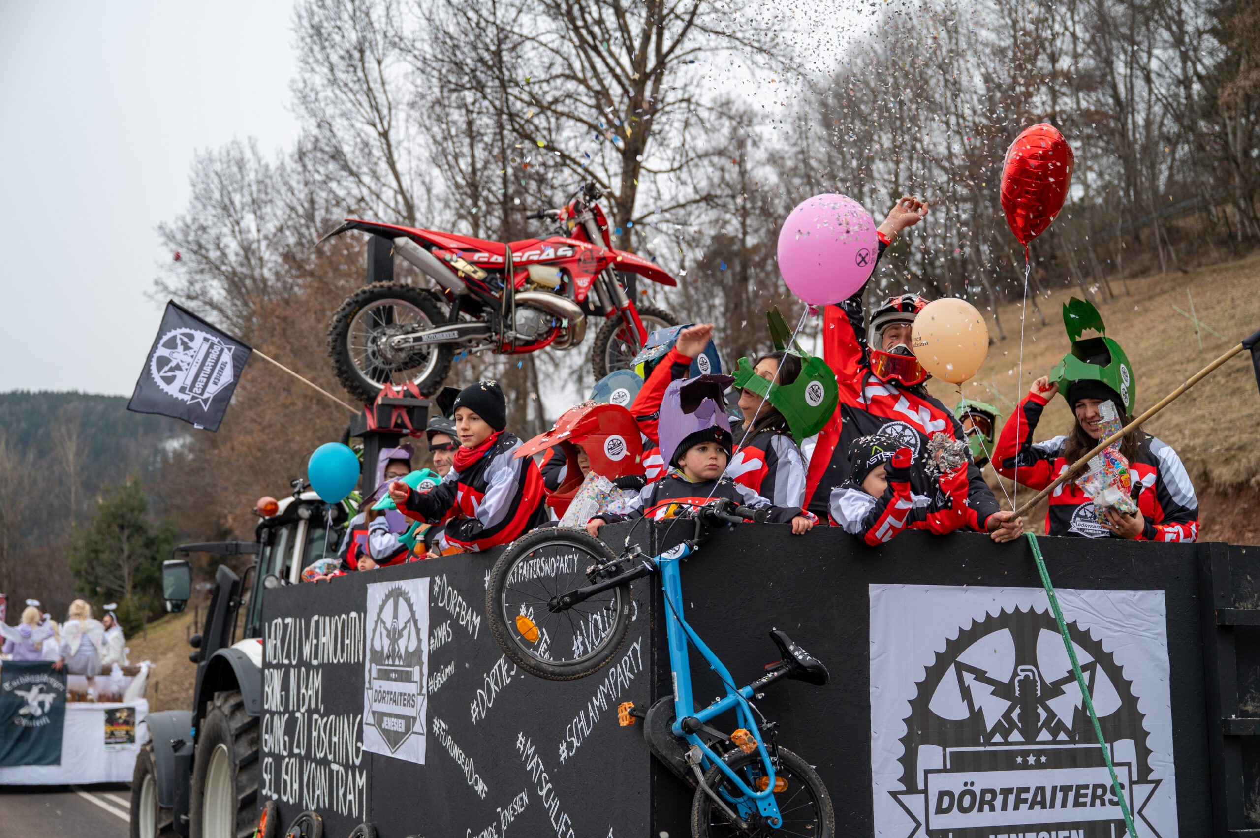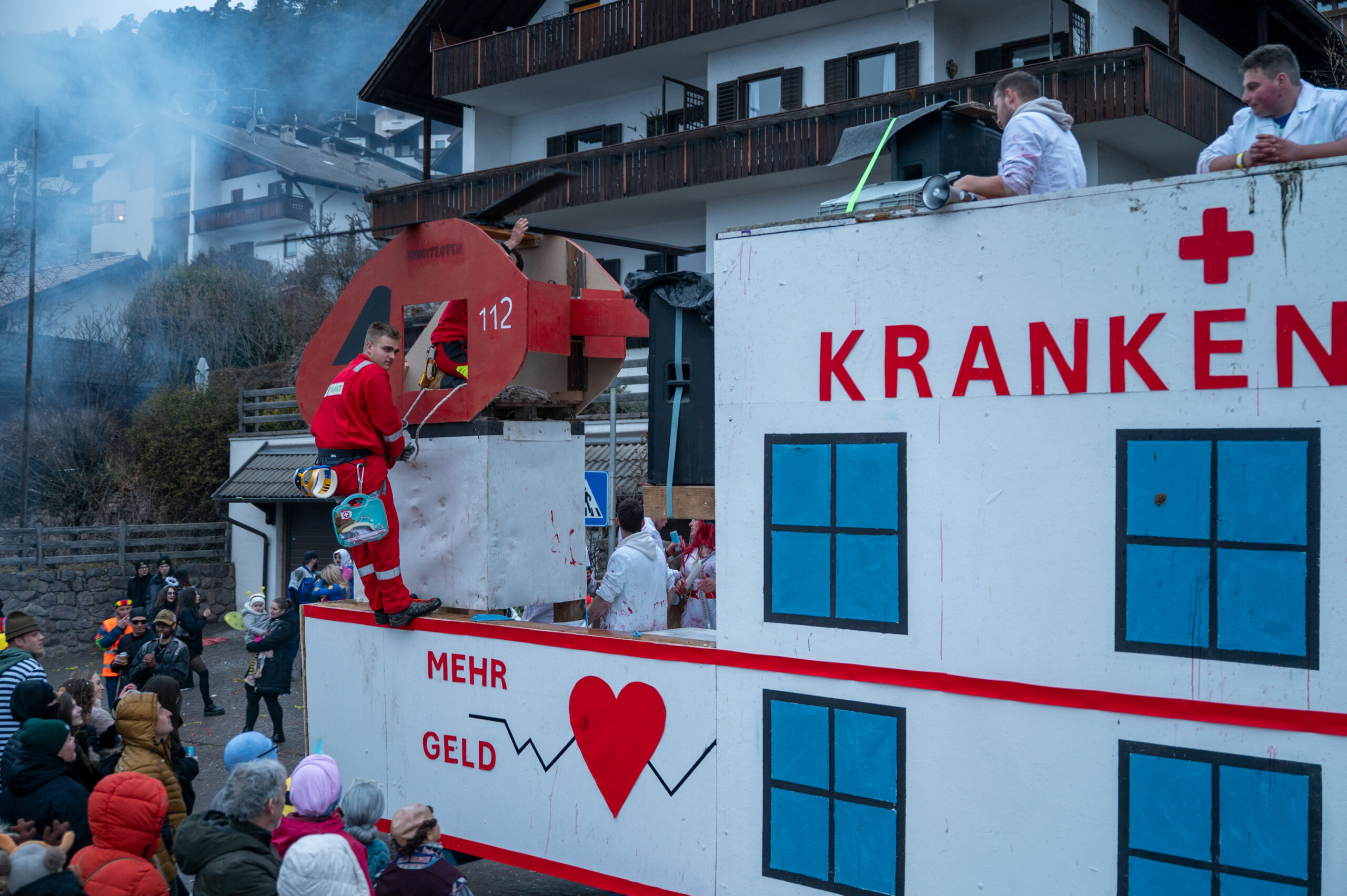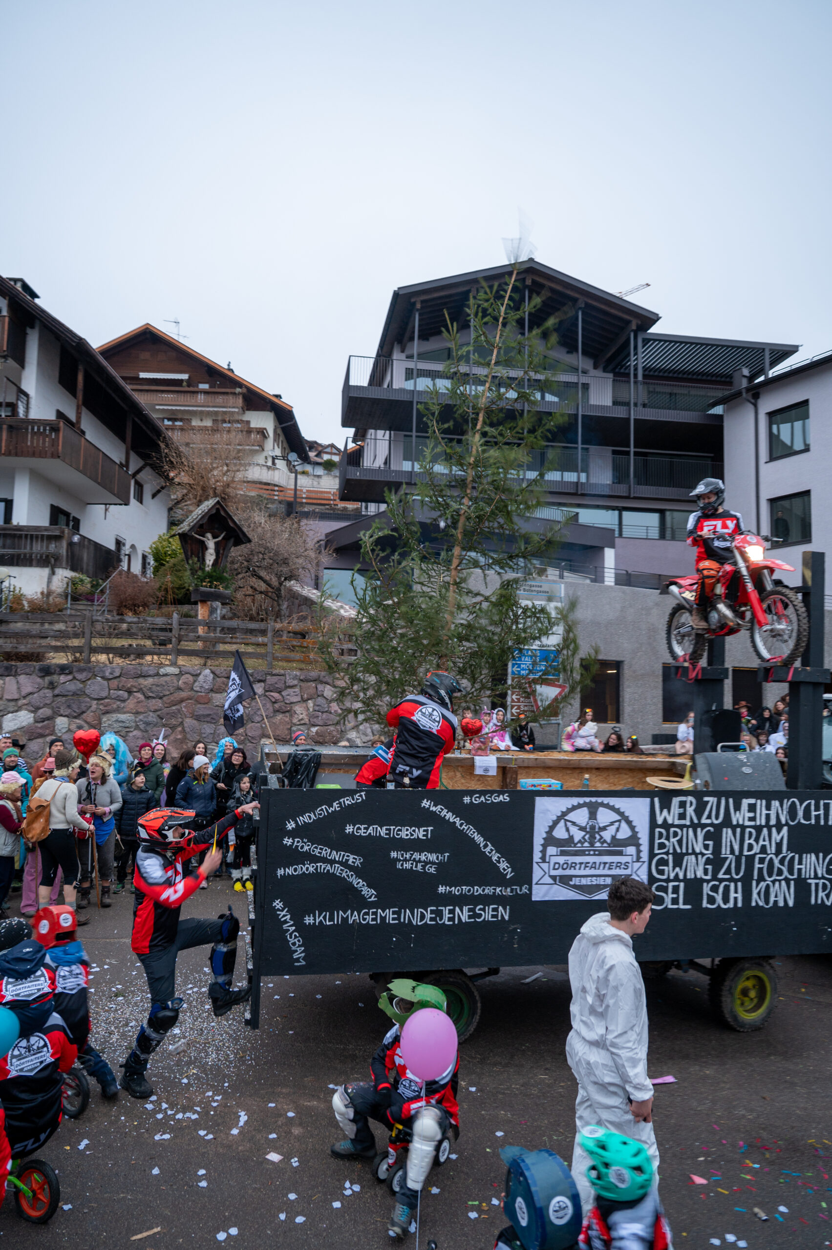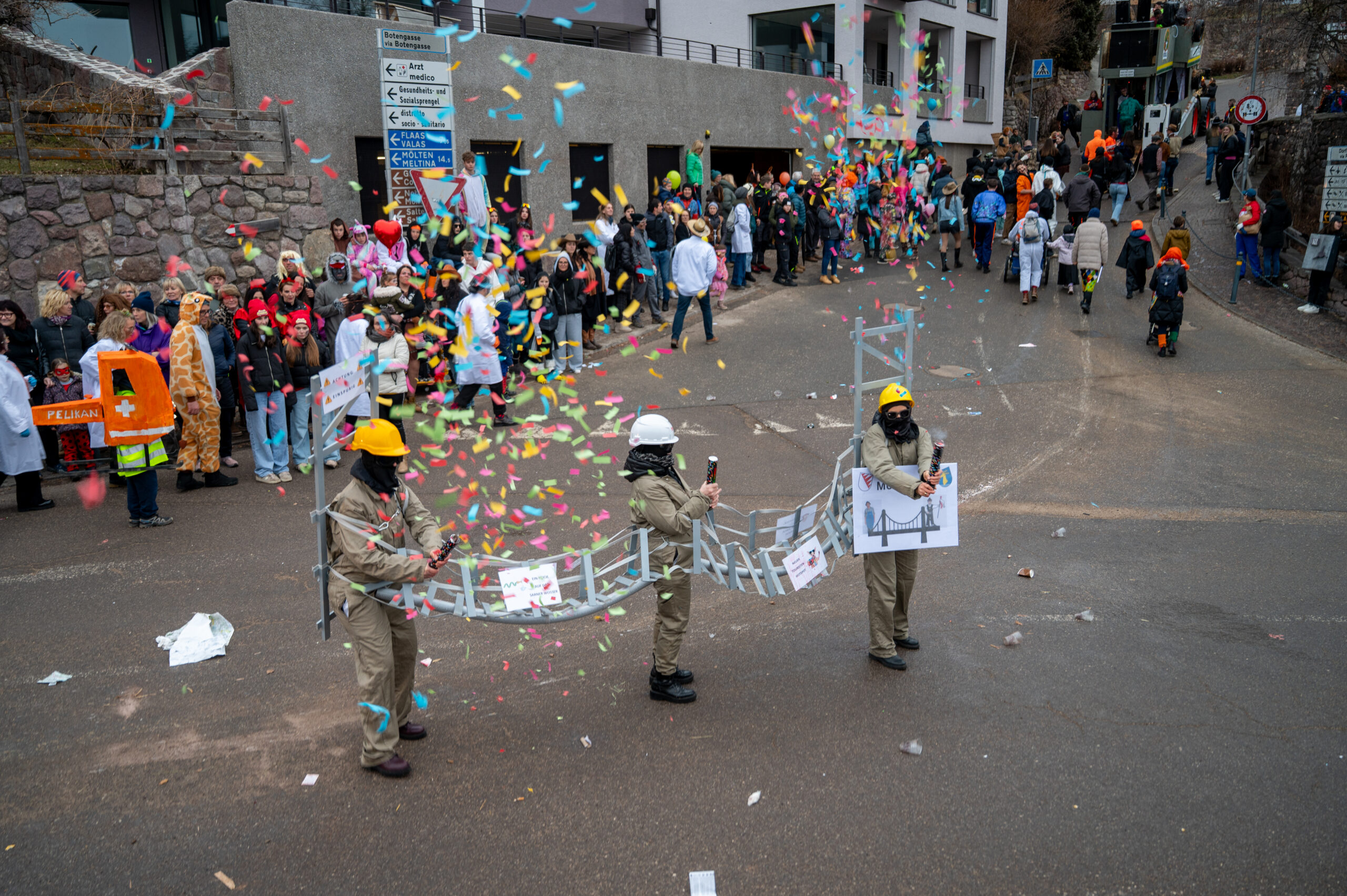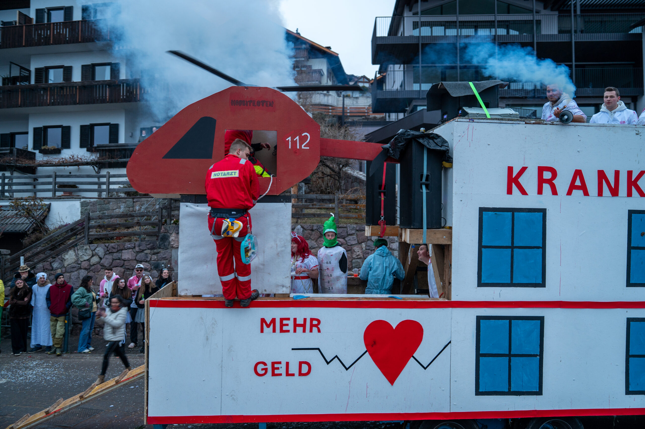 Zahlreiche fantasievoll gestaltete Faschingswagen sowie originell verkleidete Gruppen und Einzelpersonen zogen beim Umzug entlang der Route bis ins Dorfzentrum und sorgten für beste Stimmung. Besonders die aufwendig gestalteten Wagen übertrafen sich auch heuer wieder selbst und nahmen so manches aktuelle Thema mit viel Humor aufs Korn.