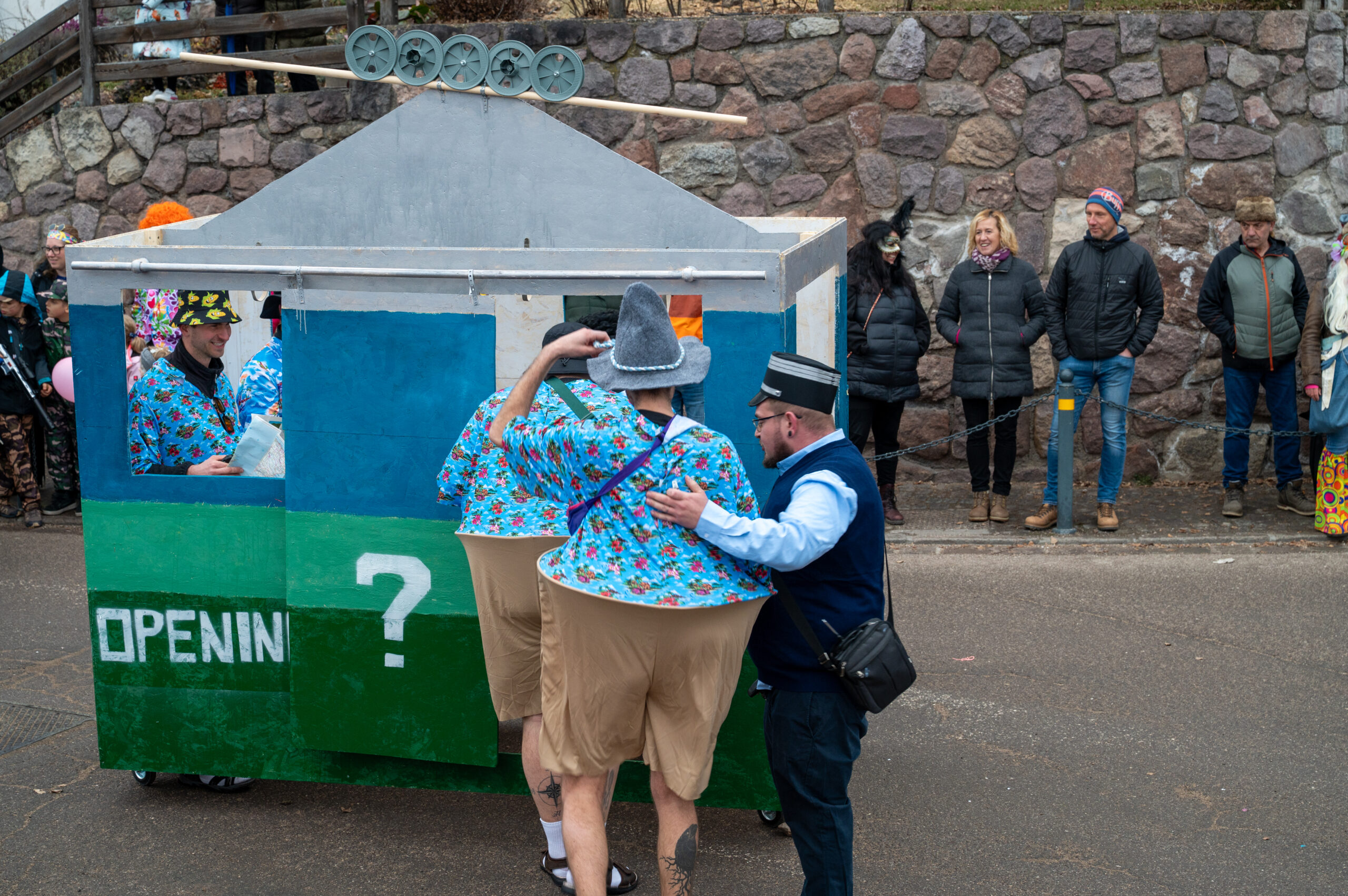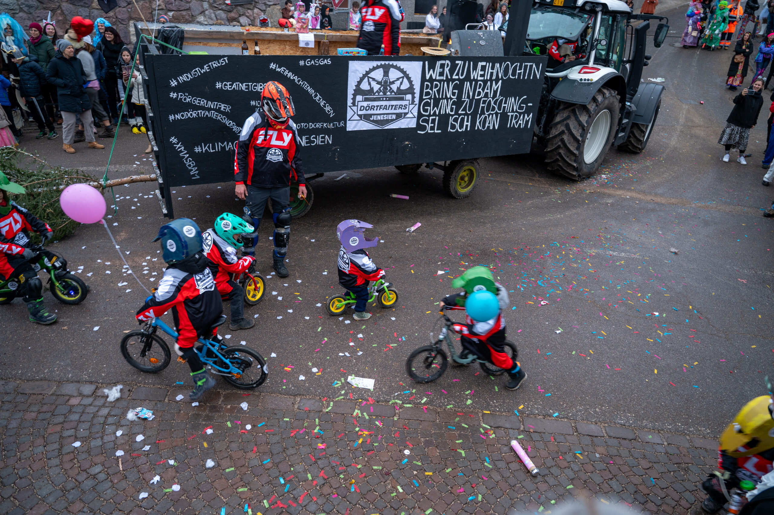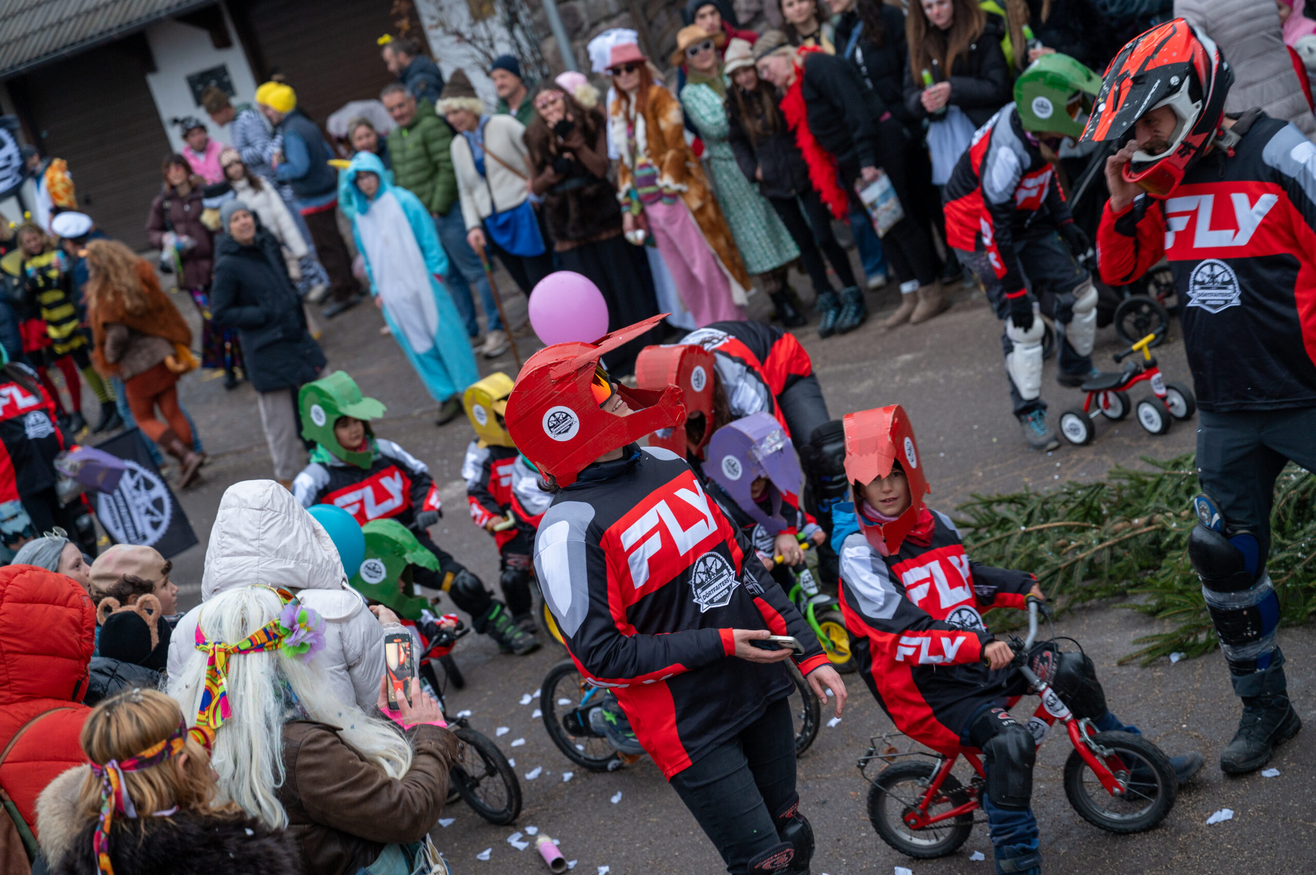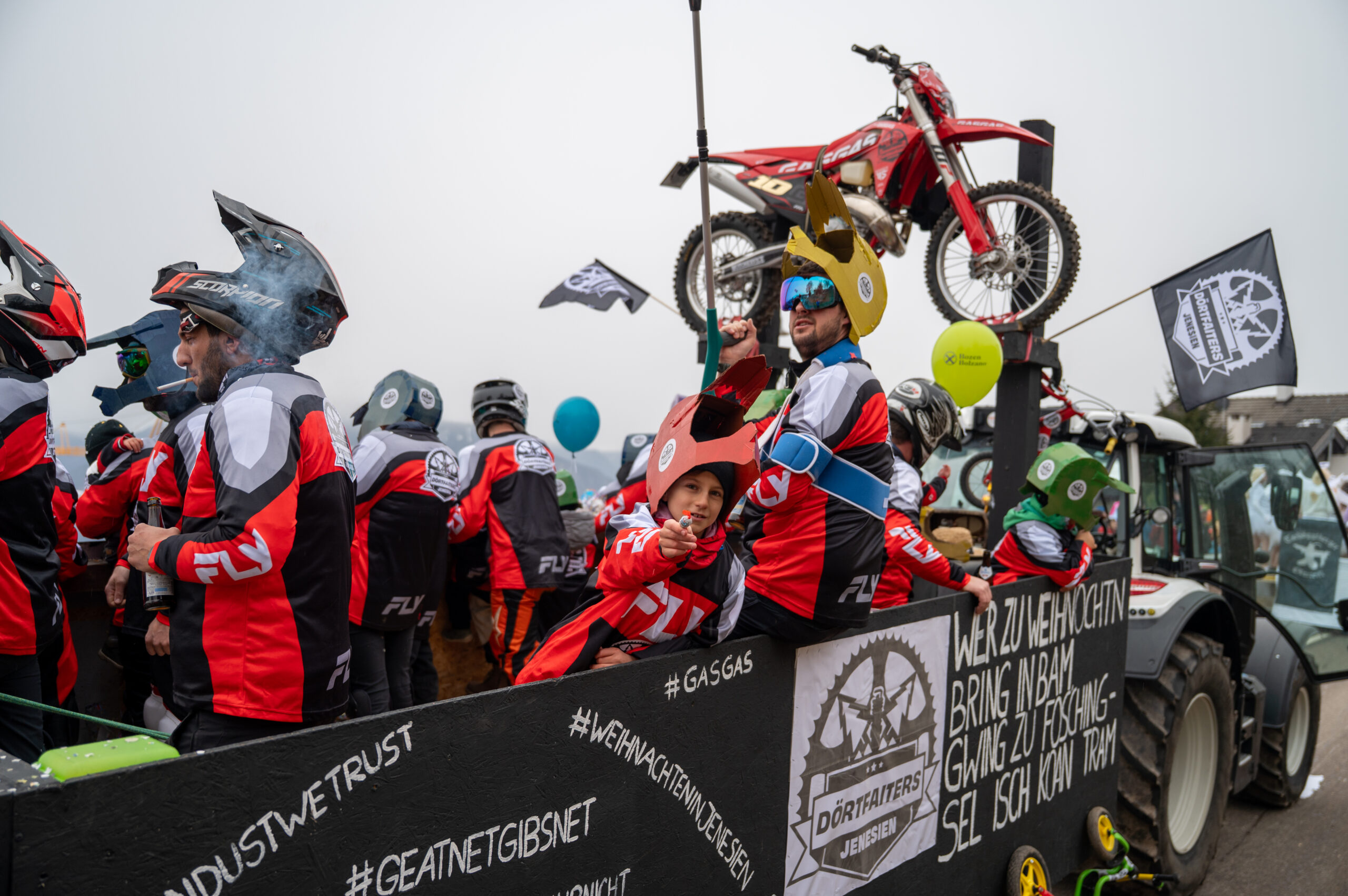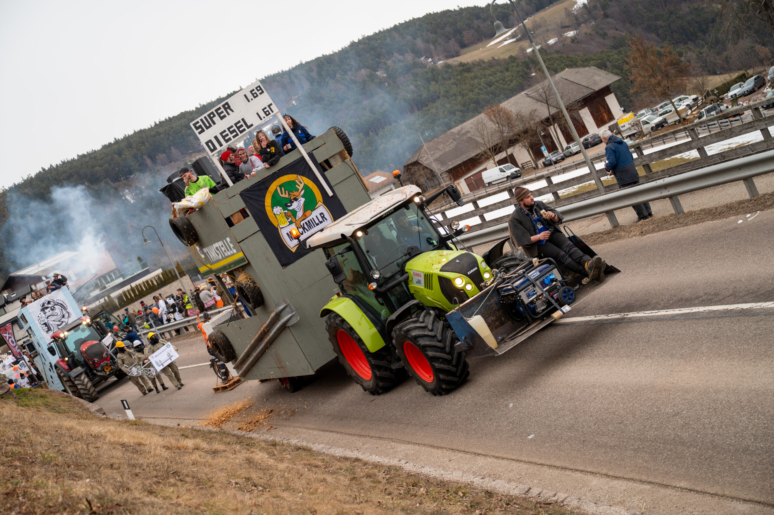 Zahlreiche fantasievoll gestaltete Faschingswagen sowie originell verkleidete Gruppen und Einzelpersonen zogen beim Umzug entlang der Route bis ins Dorfzentrum und sorgten für beste Stimmung. Besonders die aufwendig gestalteten Wagen übertrafen sich auch heuer wieder selbst und nahmen so manches aktuelle Thema mit viel Humor aufs Korn.