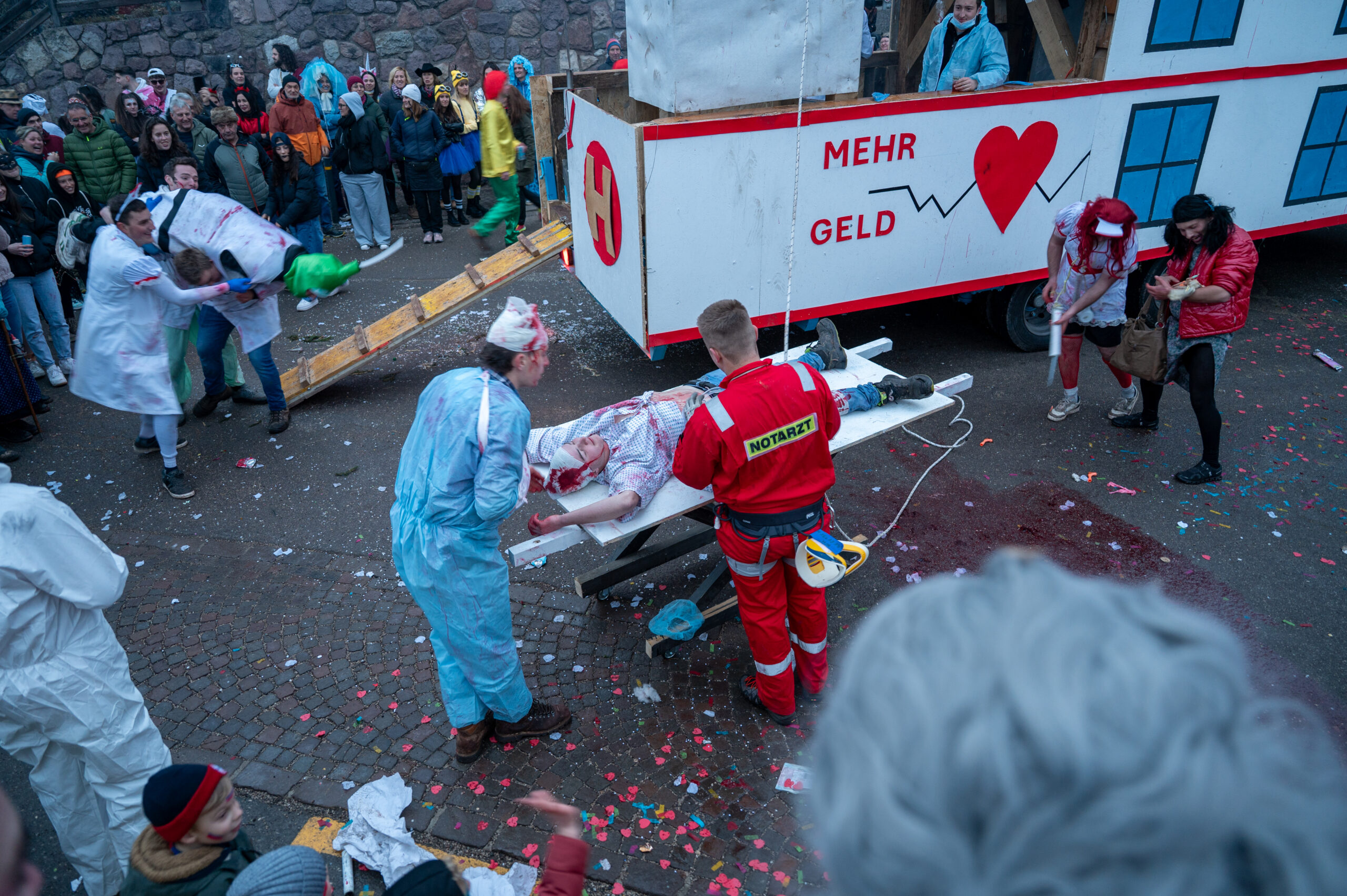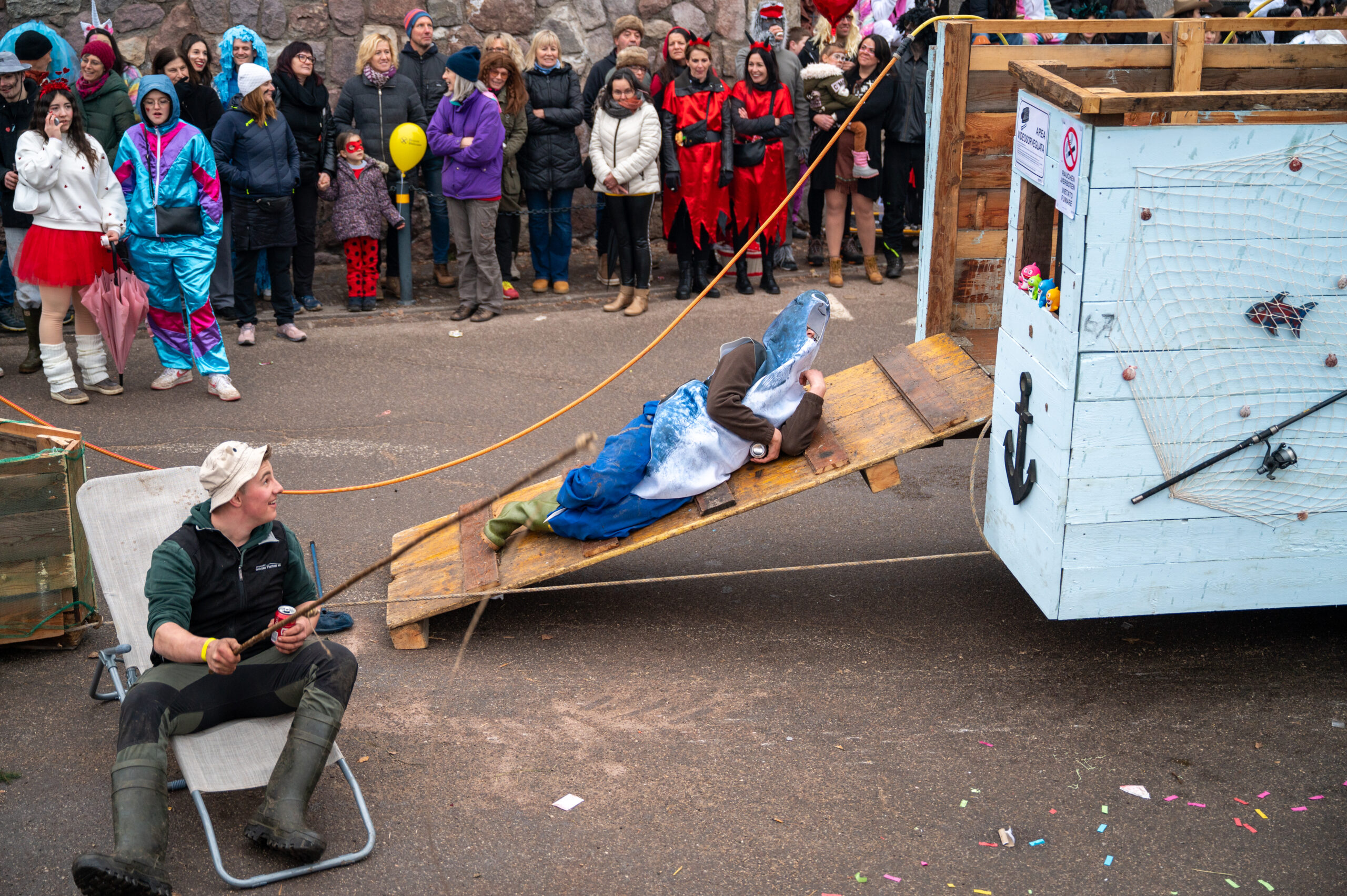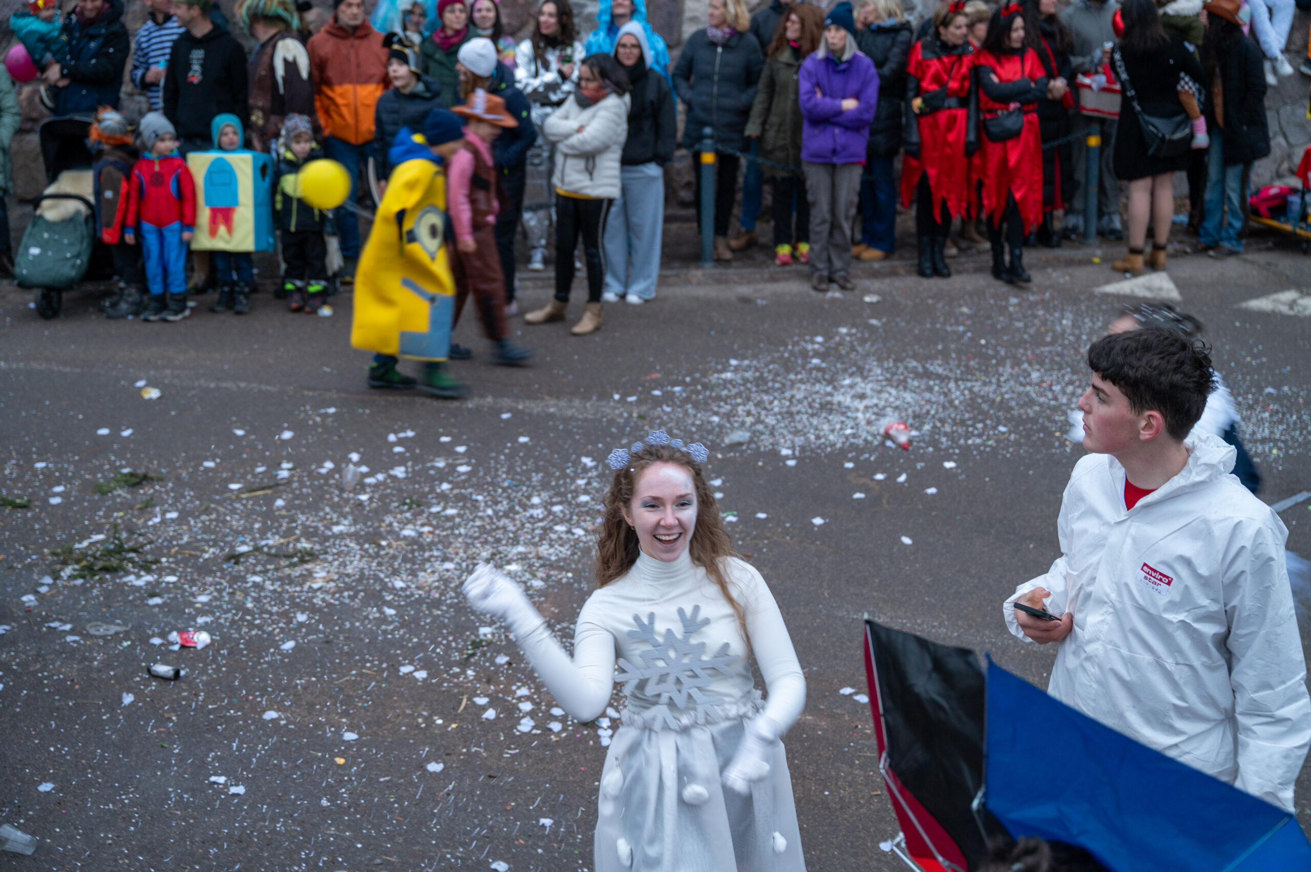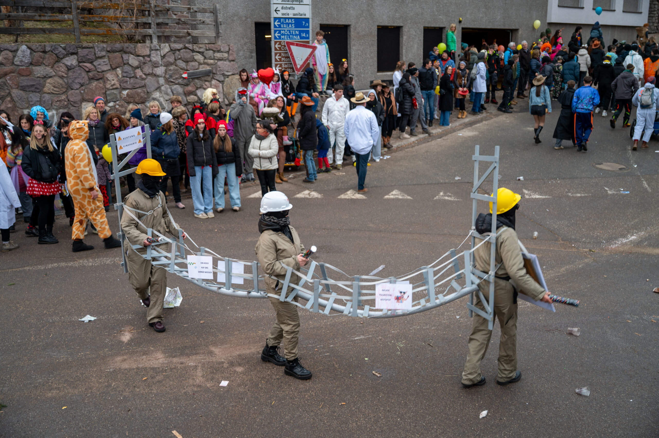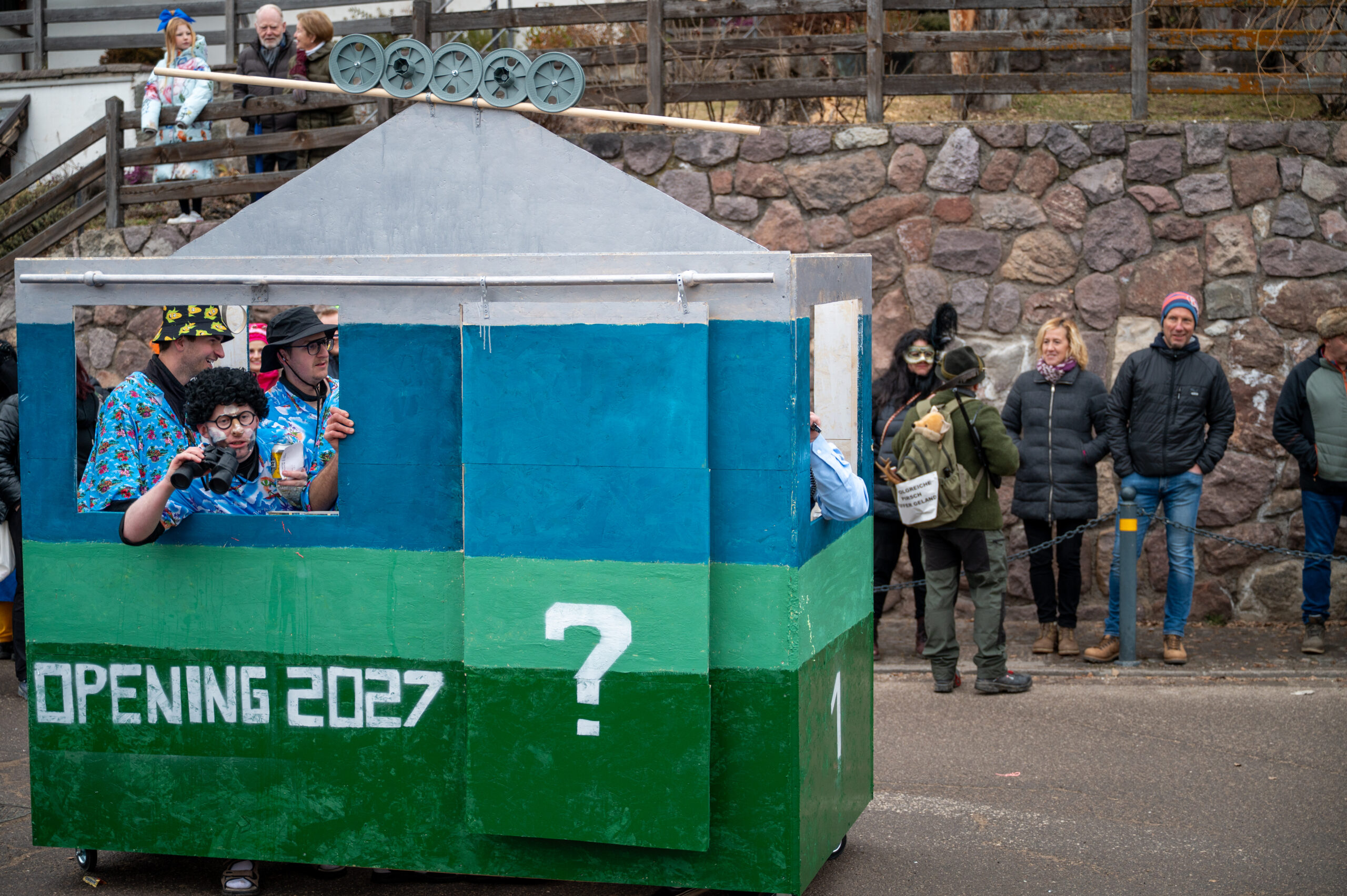 Zahlreiche fantasievoll gestaltete Faschingswagen sowie originell verkleidete Gruppen und Einzelpersonen zogen beim Umzug entlang der Route bis ins Dorfzentrum und sorgten für beste Stimmung. Besonders die aufwendig gestalteten Wagen übertrafen sich auch heuer wieder selbst und nahmen so manches aktuelle Thema mit viel Humor aufs Korn.